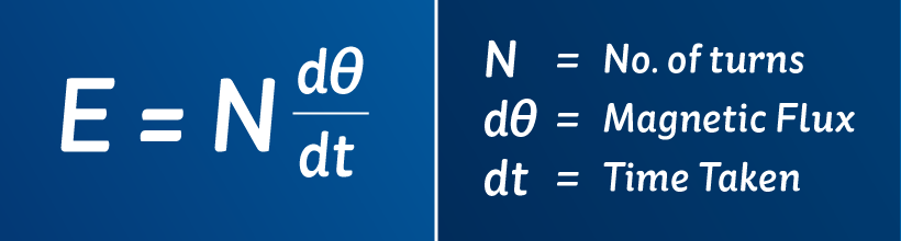 An EMF (Electro-Magnetic Force) is induced from the three coils, which are held in fixed position within the steel laminated casing on the Stator. This is a very clear example of Faraday's Law in action.